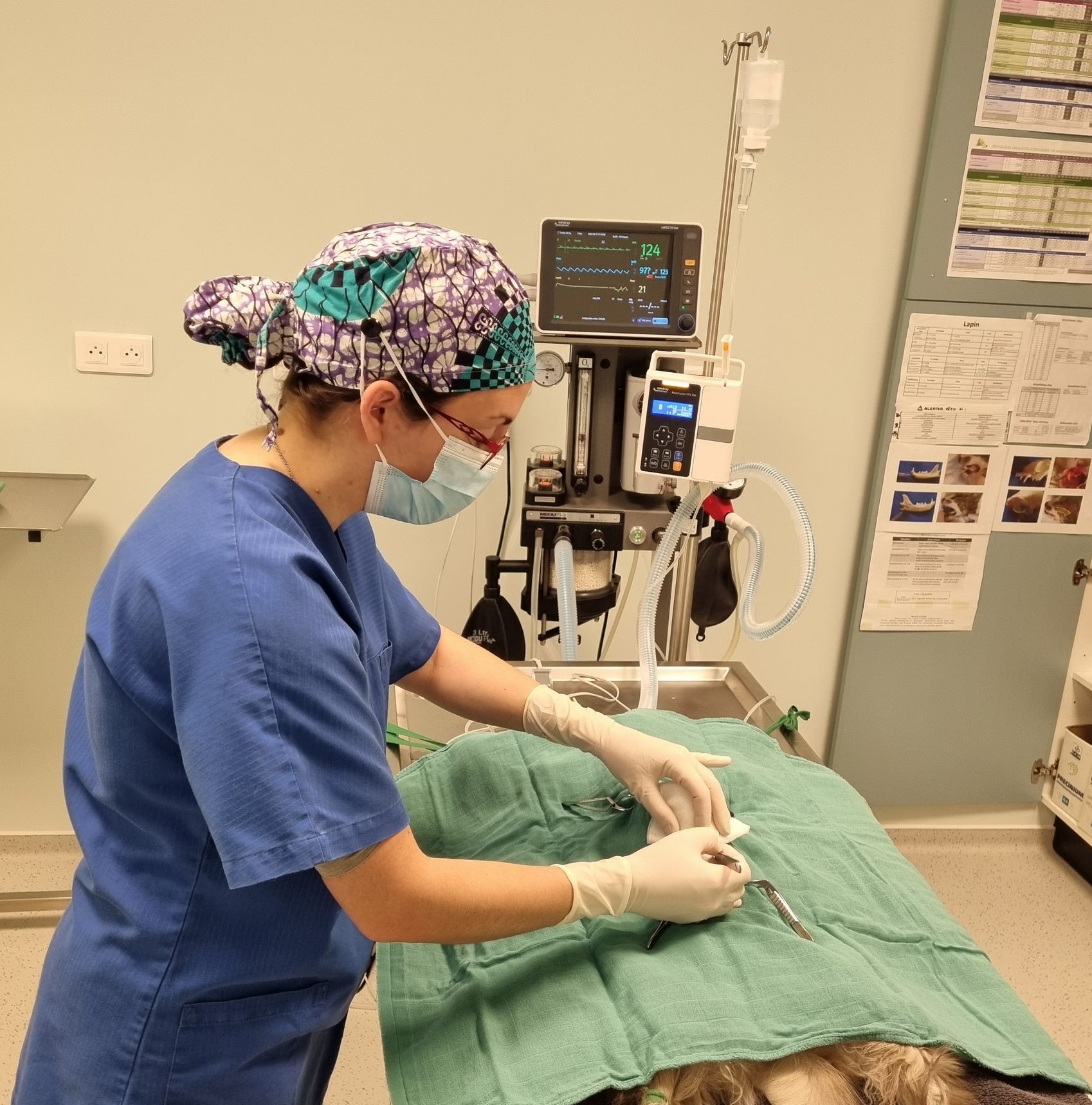 Nous réalisons sur place la plupart des interventions de chirurgie générale : stérilisations, césariennes, retrait de corps étrangers digestifs, de calculs vésicaux, de tumeurs, chirurgie cutanée...